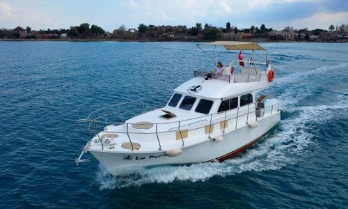 La Perla teknesi, mavi suların derinliklerinde unutulmaz bir deneyim sunar. 12 kişilik kapasitesiyle, misafirlerini eşsiz bir yolculuğa çıkarır. Lezzetli yemekler, içecekler ve nefes kesen manzaralarla dolu 4 saatlik turlarıyla, La Perla, denizseverler için vazgeçilmez bir seçenektir.